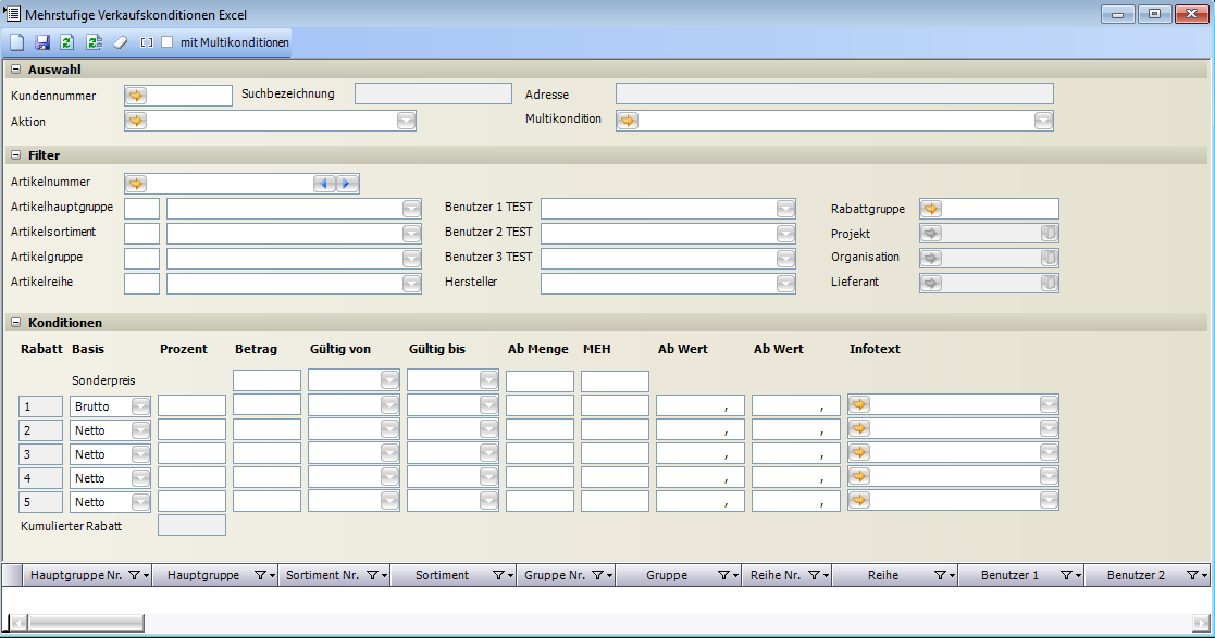 | Kundennummer | Kundennummer für welche eine Verkaufskondition erstellt wird |
