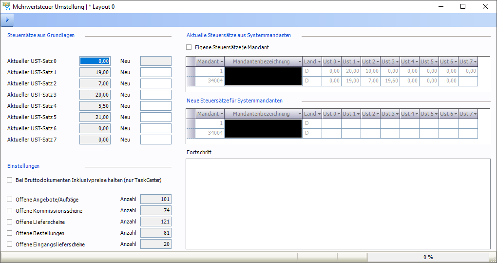 Ustsatz-Änderung für Mandanten