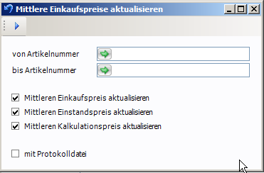 Im TaskCenter – Grundlagen – Administrator Tools – Datenreorganisation – Mittlere Einkaufspreise: