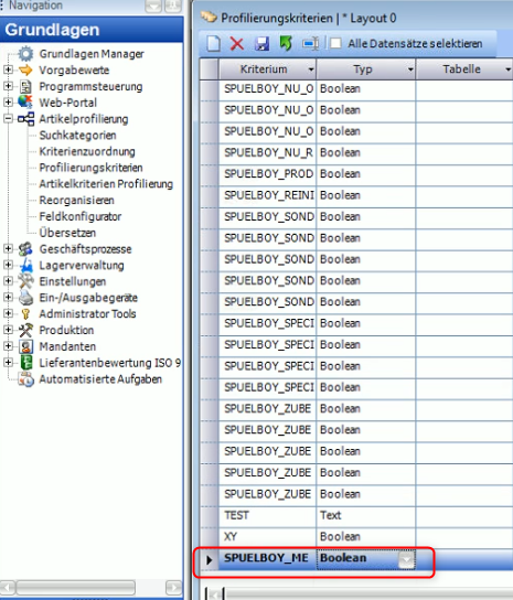 - Neues Profilierungskriterium für den Artikel anlegen unter "Grundlagen" → "Artikelprofilierung" → "Profilierungskriterien".