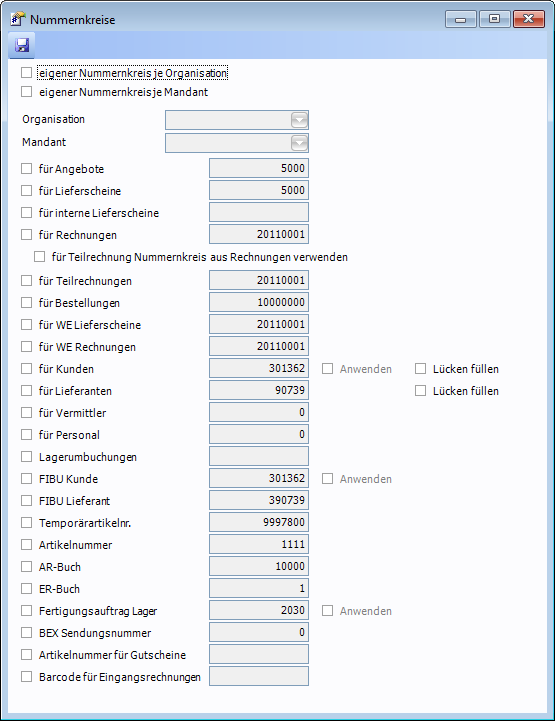 Jeder Mandant im System hat seine eigenen Nummernkreise. Es MUSS dann auch ZWINGEND für jeden Mandanten die Hinterlegung der Nummernkreise erfolgen!