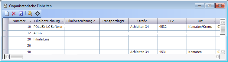 | Filialbezeichnung | Name der Organisatorischen Einheit |