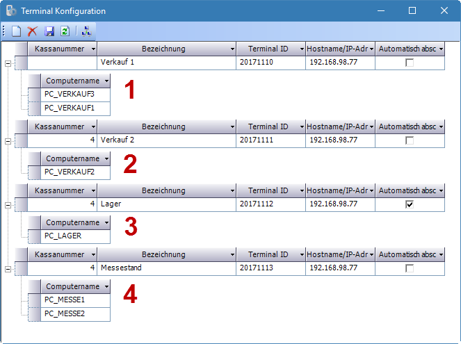 - Kassenterminal „Verkauf 2" wird nur von der Kassa 4 und dem PC „PC_VERKAUF2" verwendet.