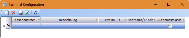In diesem Fenster werden alle Kassenterminals verwaltet/angegeben. Jedes Terminal kann an eine Kassennummer gebunden werden, wenn eine Kassanummer angegeben wird. Ist keine Kassanummer vorhanden, kann das Terminal für alle Kassen verwendet / geteilt werden.