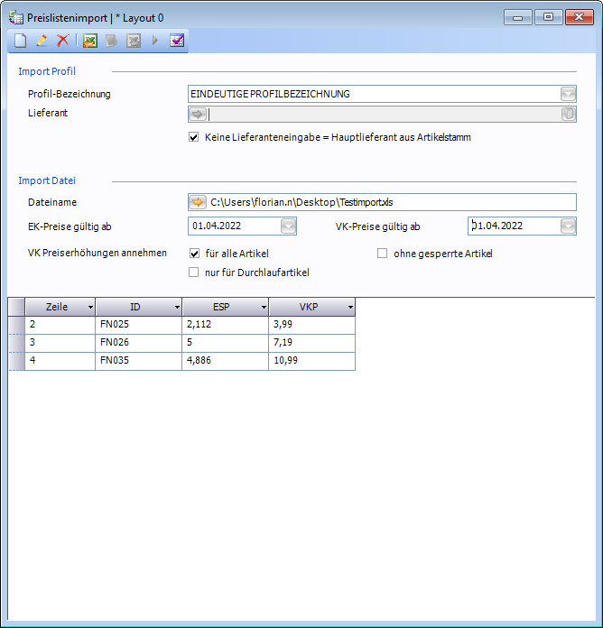 Der Preislistenimport dient dazu die Einkaufs und Verkaufspreise auf Basis einen Excels in Masse zu pflegen.