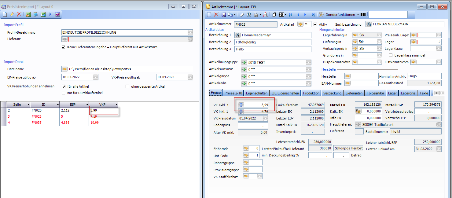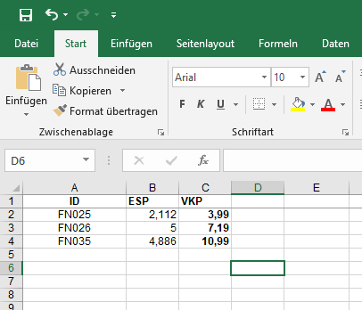 Preislistenimport