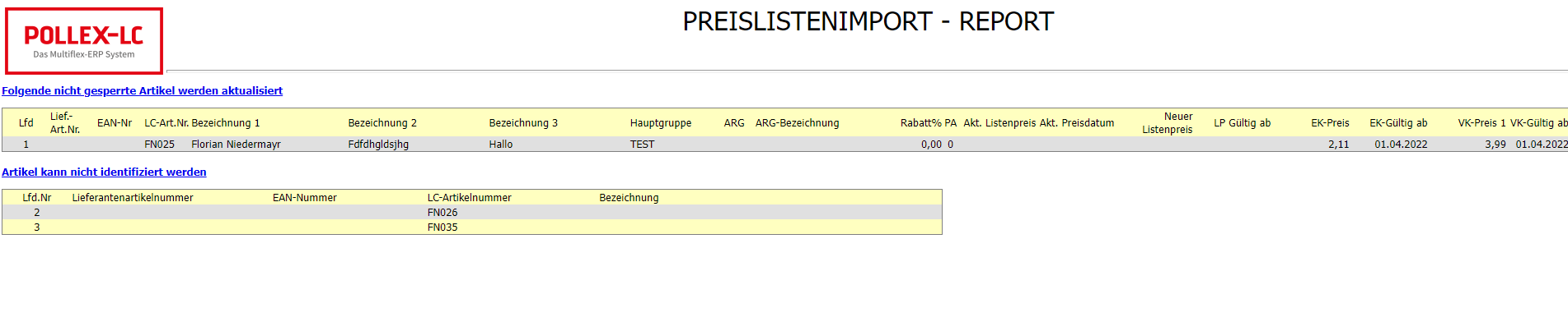 Mit der Funktion "Preisaktualisierung" werden die geänderten Preise dann auch im Artikelstamm ersichtlich.