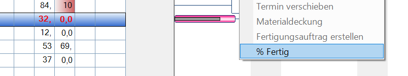 Alternativ zur Drag&Drop Methode kann auch mit rechter Maustaste und dem Befehl "% Fertig" ein Fenster zu Eingabe des aktuellen Fertigstellungsgrades geöffnet werden.