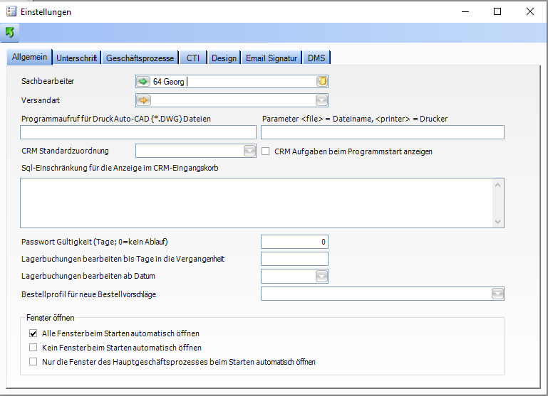 | Speicherort nach Drucken als Datei öffnen | CRM | Setzt die (Vor-)Einstellung ob Dokumente und Excel-Exporte nach dem Druck als Datei im Windows Explorer geöffnet werden sollen. |