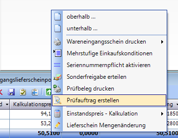 Hier findet sich der Eintrag "Prüfauftrag erstellen".