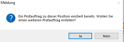 Mit einem Klick auf "Ja" wird trotzdem ein neuer Prüfauftrag erstellt.