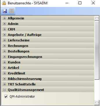 Unter der Sektion "Qualitätsmanagement" befindet sich das Benutzerrecht "QM-Administrator".