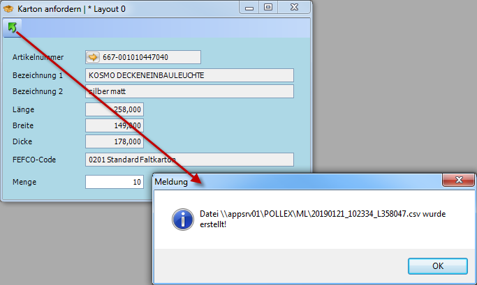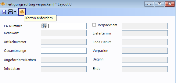 Das Fenster wurde um das Symbol Karton anfordern erweitert, welches das gleichnamige Fenster öffnet.