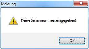 Wird ein Lieferschein aus einem Auftrag heraus (im Fenster Angebote/Aufträge über Sonderfunktionen – Erstelle Lieferschein bzw. Erstelle Lieferschein und Rechnung) erstellt und die Seriennummer im Auftrag nicht zugeordnet so öffnet sich folgende Meldung: