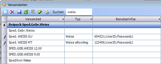 Der Benutzername und das Passwort müssen in der Versandart in den Spalten FTP-Benutzer und FTP-Passwort ein.