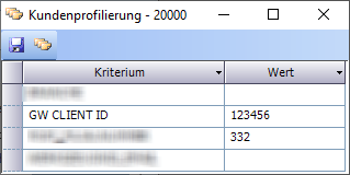 Im Kundenstamm den o.a. Kunden selektieren. Sonderfunktionen Kundenprofilierung öffnen. In den Vorgabewerte das Profilierungskriterium GW CLIENT ID anlegen (bitte auf die Leerzeichen achten). Im Fenster Profilierungskriterium dann den Wert eintragen. Nachteil: Das Profilierungskriterium GW CLIENT ID wird bei allen Kunden angezeigt.