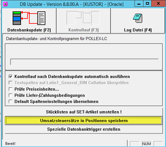 Hat der Kunde kein Classic installiert (und es handelt sich um einen Neukunden), dann muss die LCLNEU.ora ausgeführt werden, dabei wird die Einstellung aktiviert und bei den Dokumenten somit der Steuersatz in die Positionen gespeichert,