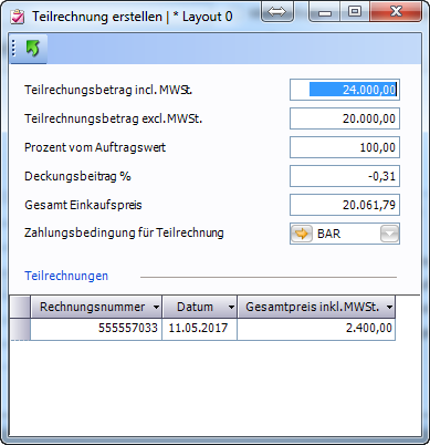 Danach ist es möglich weitere Teilrechnungen zu erstellen.