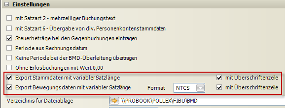 Optional: Da BMD beim Dateiaufbau die variable Satzlänge bevorzugt kann dies optional auch eingestellt werden. Dazu müssten folgende Optionen aktiviert werden: