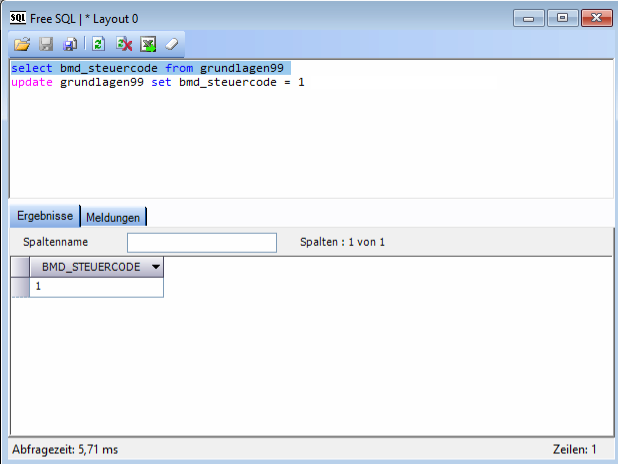 2) Weiters muss mit SQL der BMD_STEUERCODE geändert werden.