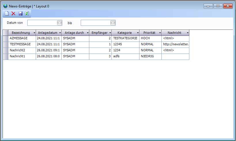 Sobald man hier ein Datum einträgt und mit Tabulator das Feld verlässt, werden Nachrichten mit Anlagedatum größer gleich diesem Datum angezeigt.