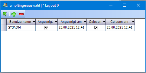 In diesem Fenster können Empfänger zu einer Nachricht hinzugefügt oder entfernt werden.