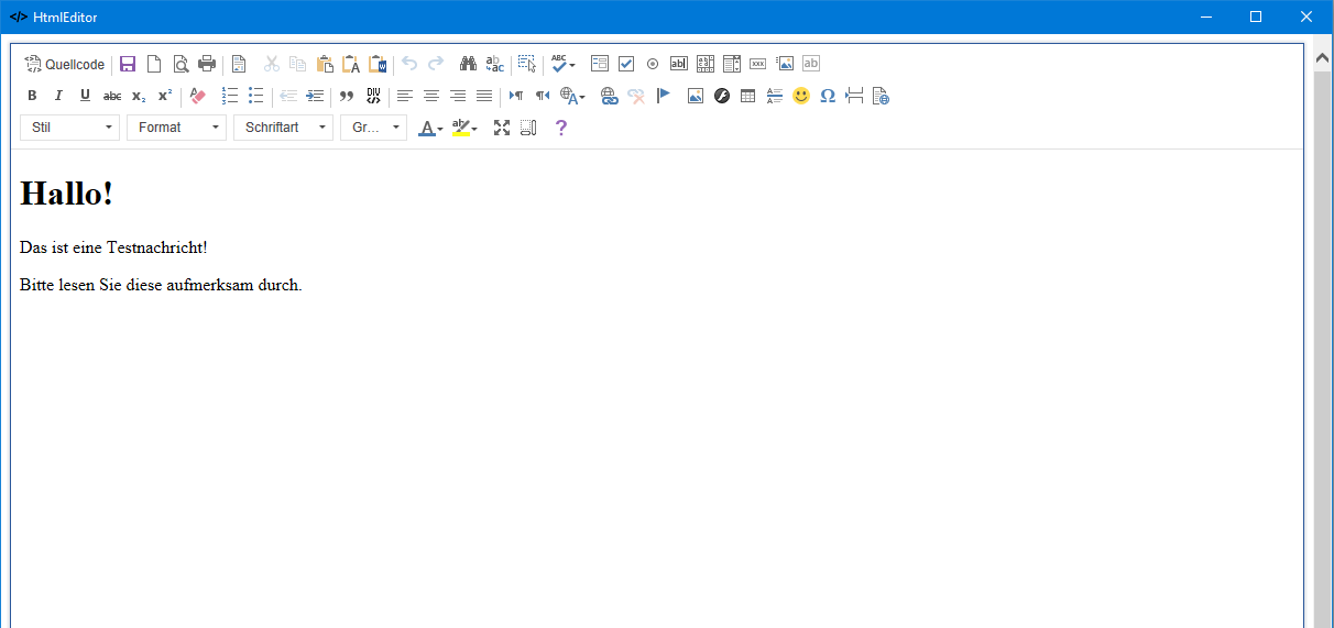 Mit den Klick auf den orangenen Editorbutton in der Spalte Nachricht öffnet sich der HTML-Editor.
