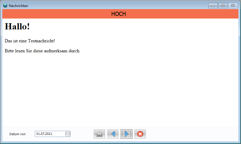 Ganz oben im Fenster wird farblich die Priorität der Nachricht dargestellt.