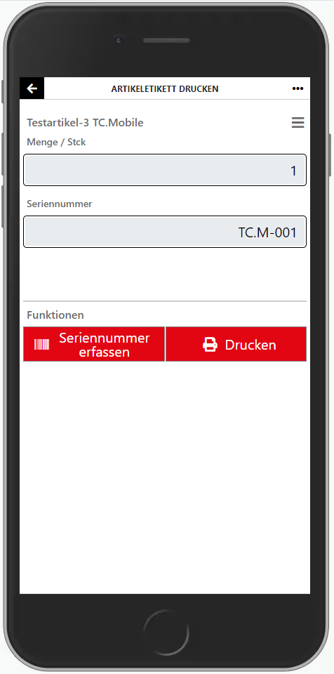In diesem Bereich kann man Artikeletiketten für den ausgewählten Artikel drucken. Optional kann eine Serien-/Chargennummer beim Artikel hinterlegt werden, die in weiterer Folge am Artikeletikett mitgedruckt wird.