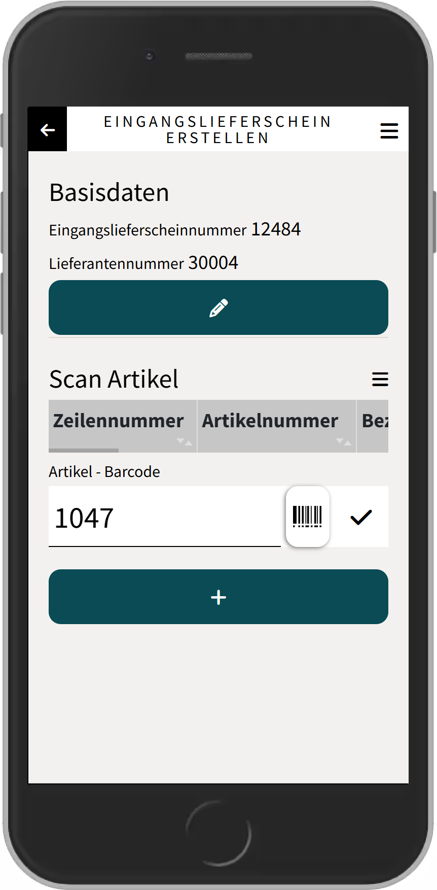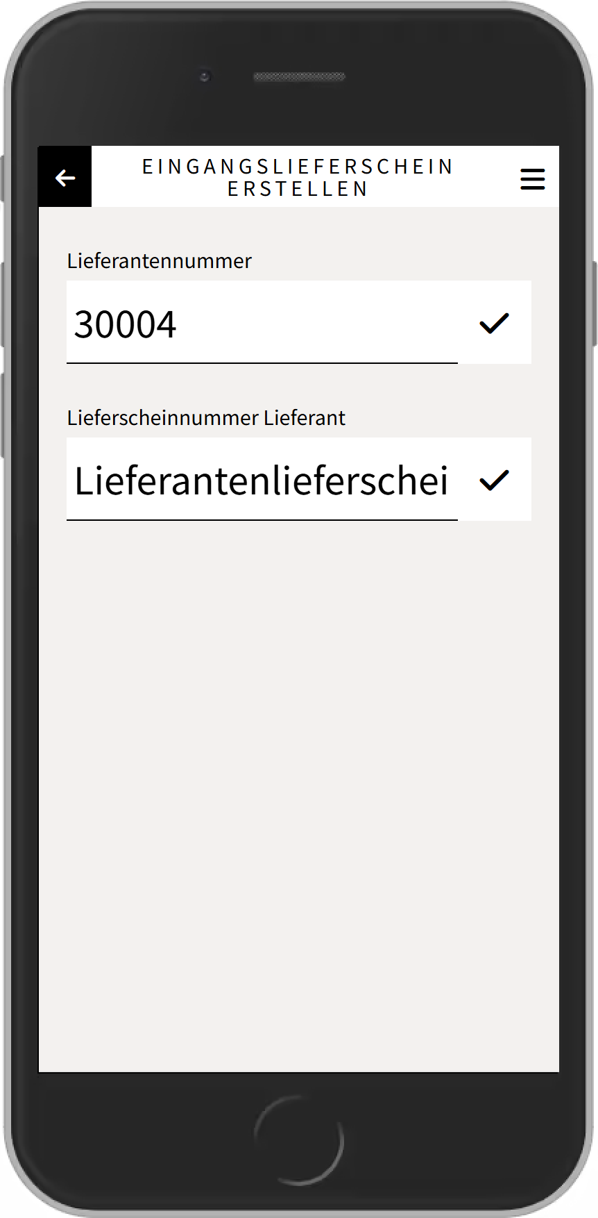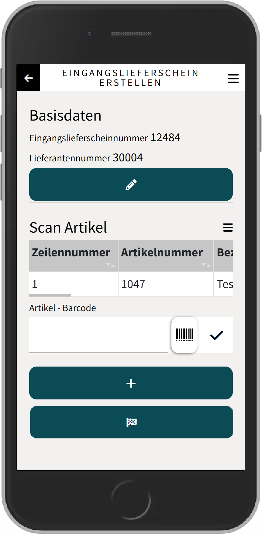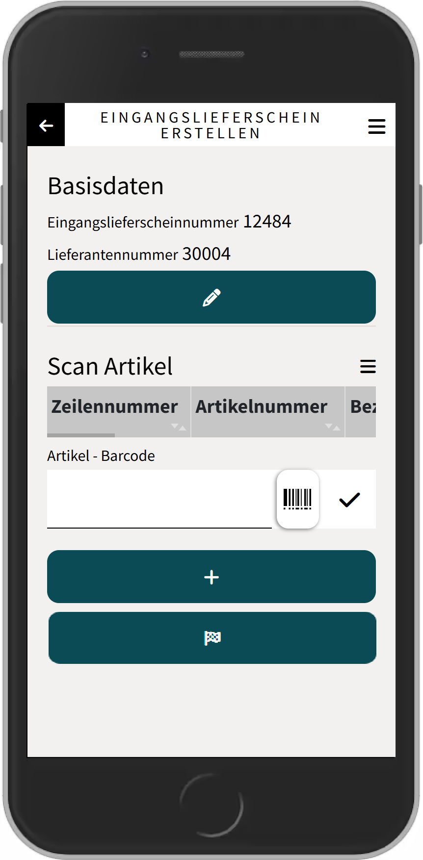 Nach der Eingabe bzw. der Auswahl der Lieferantennummer wird ein neuer Eingangslieferschein erstellt und die Hauptansicht geladen.