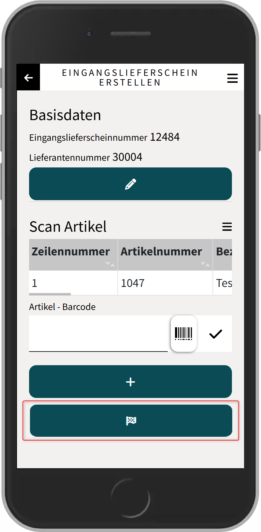 Eingangslieferschein abschließen