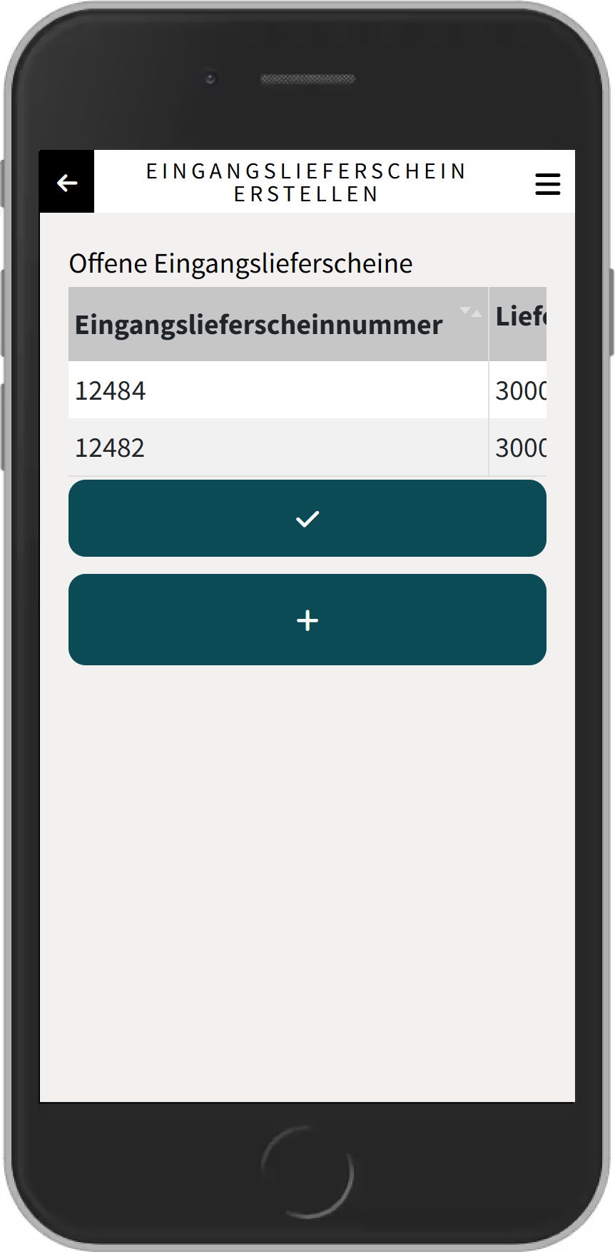 Es kann ein vorhandener Eingangslieferschein aus der Liste gewählt oder ein neuer Eingangslieferschein erstellt werden.