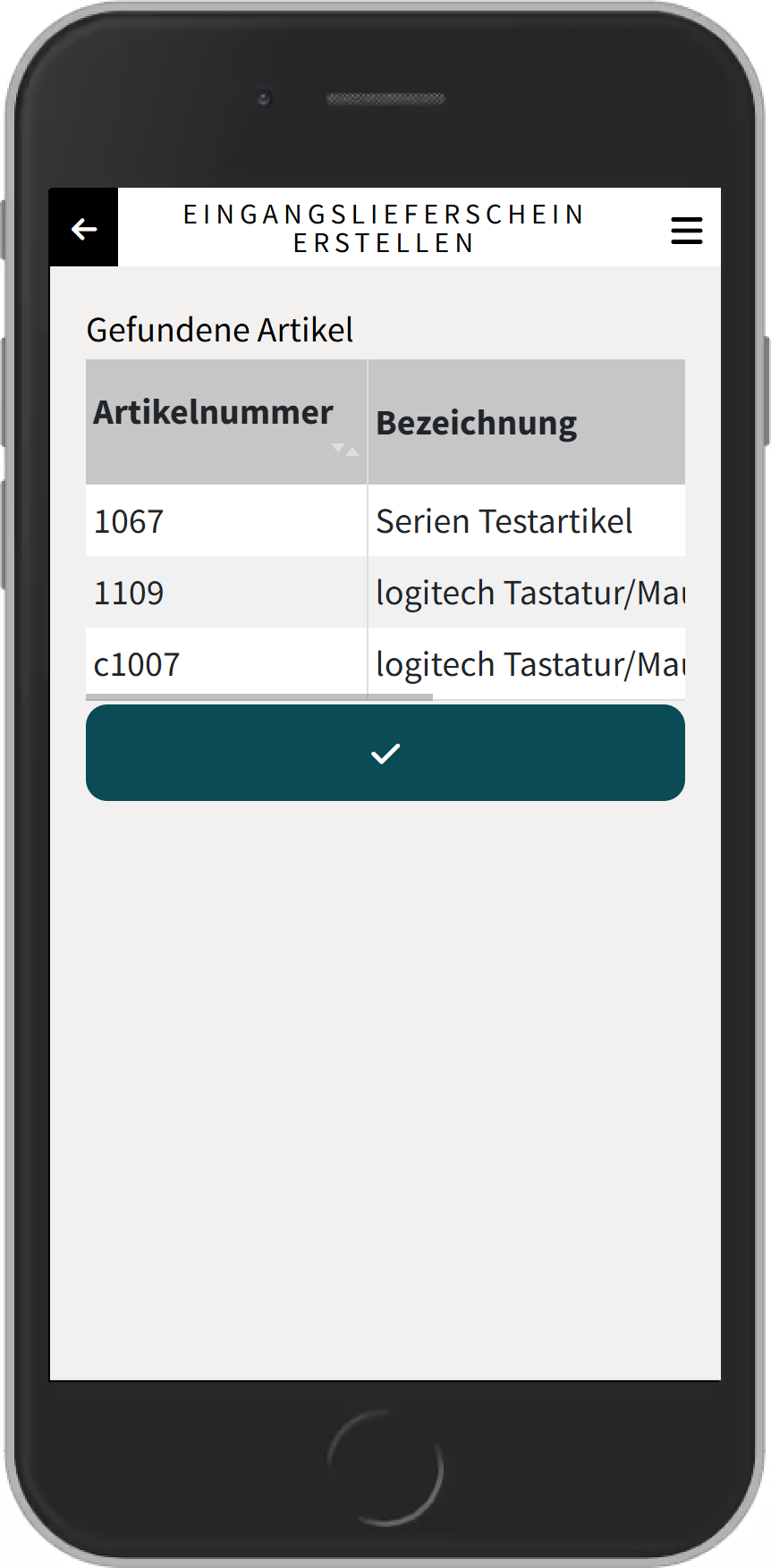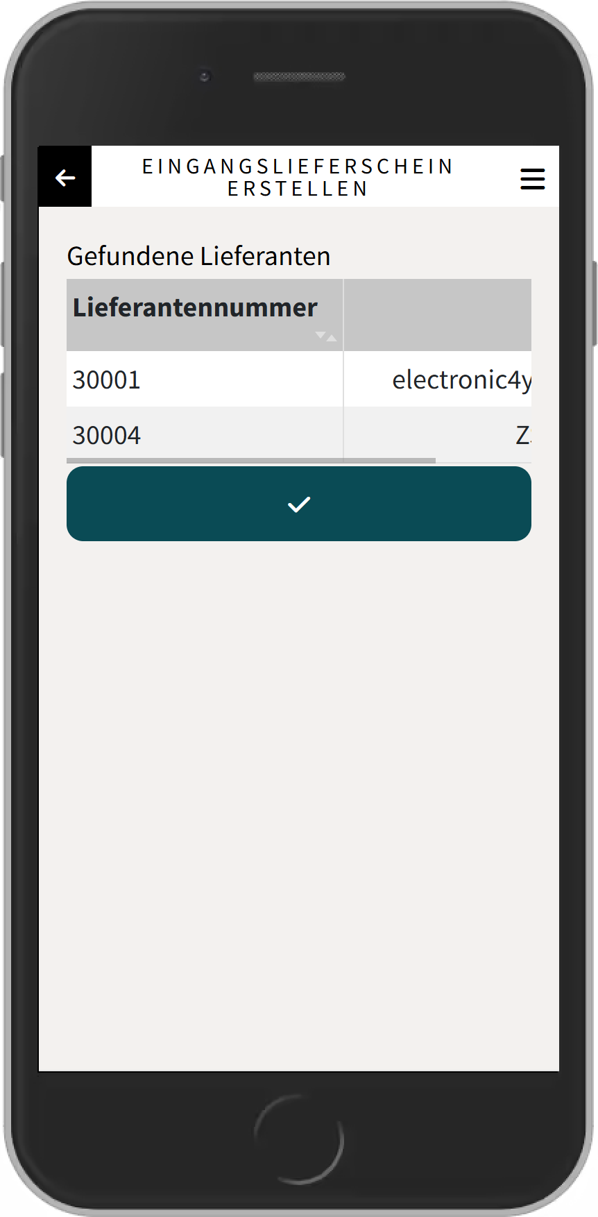 Wurden mehrere Ergebnisse gefunden, wird eine Liste zur Auswahl des Lieferanten oder des Artikels angezeigt.