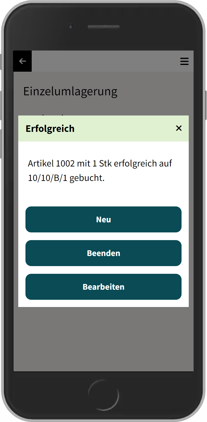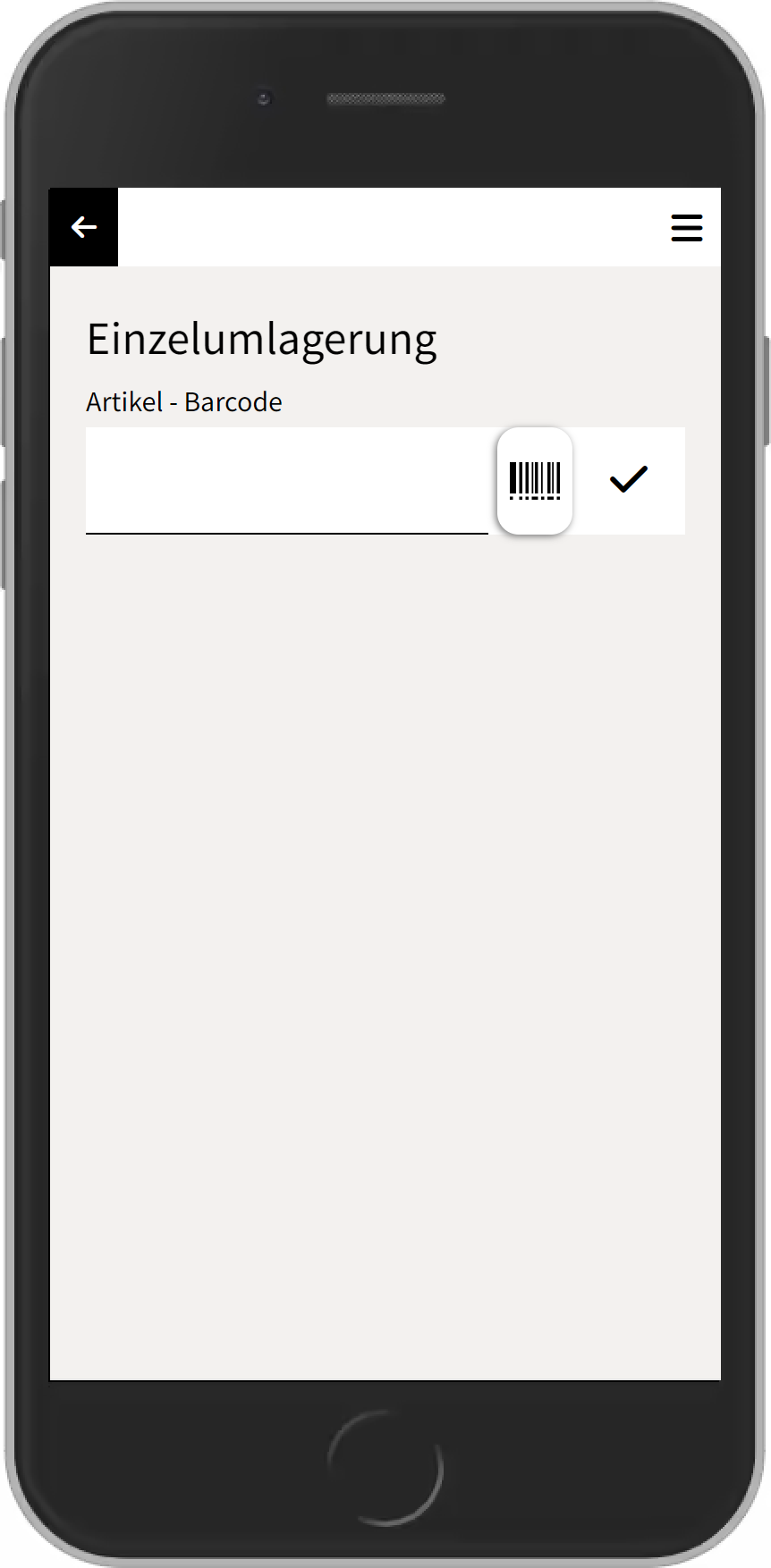 Wenn der korrekte Artikel gescannt wurde, können die Zubuchungslagerdaten eingegeben werden.