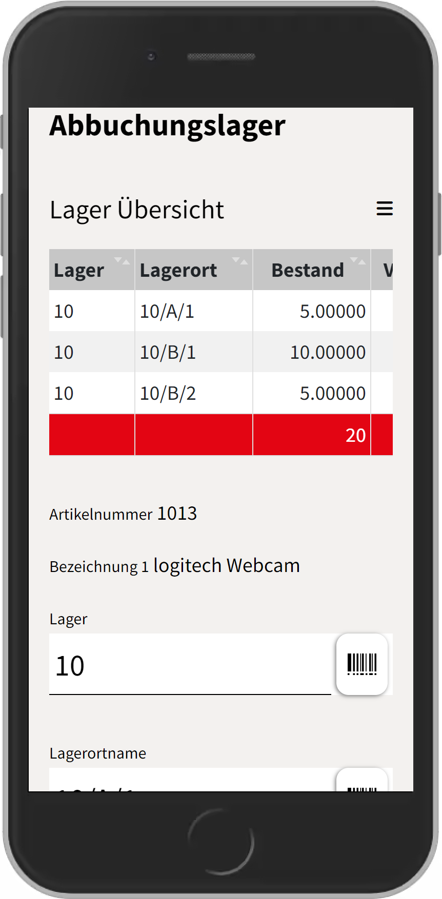 Im Feld Abbuchungslagerort muss der Name des Lagerortes eingegeben werden, von dem abgebucht wird.