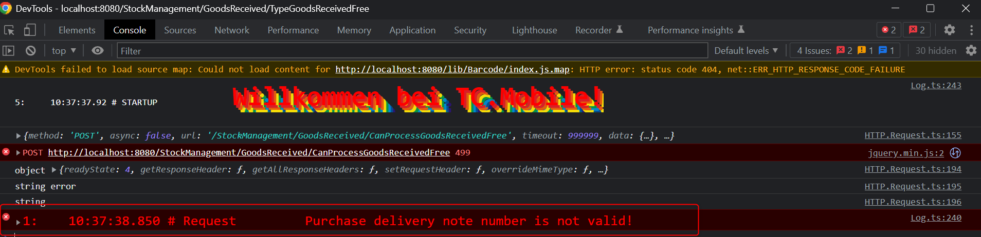 JavaScript errors detected