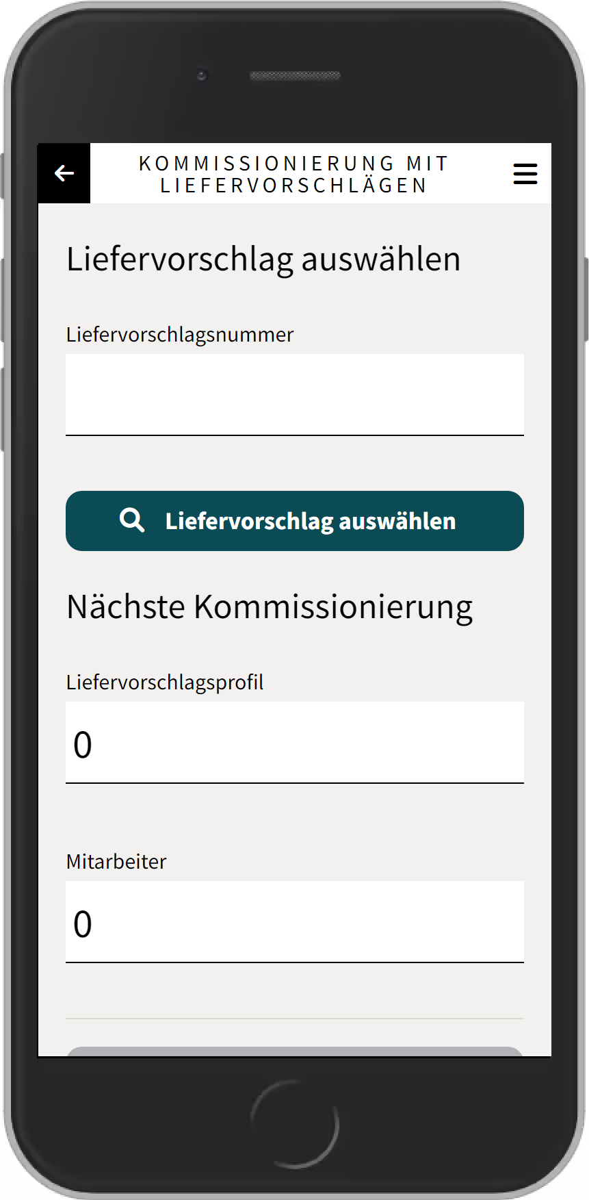 Zunächst muss im entsprechenden Textfeld die Liefervorschlagsnummer eingegeben werden, für die die Kommissionierung gemacht werden soll.