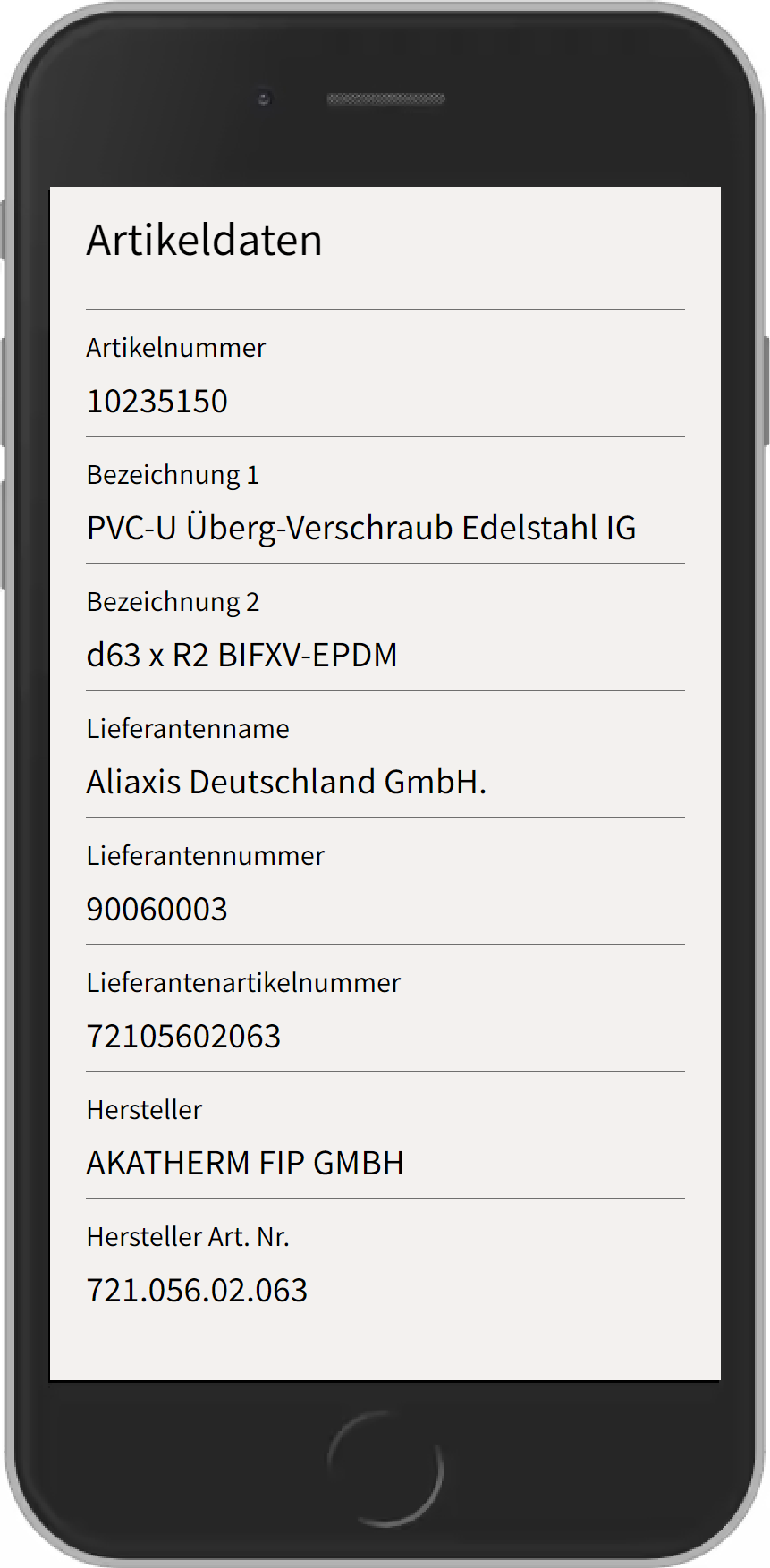 Wenn ein Artikel gescannt wurde, werden unter der Artikel-Tabelle einige Informationen zum Artikel angezeigt: