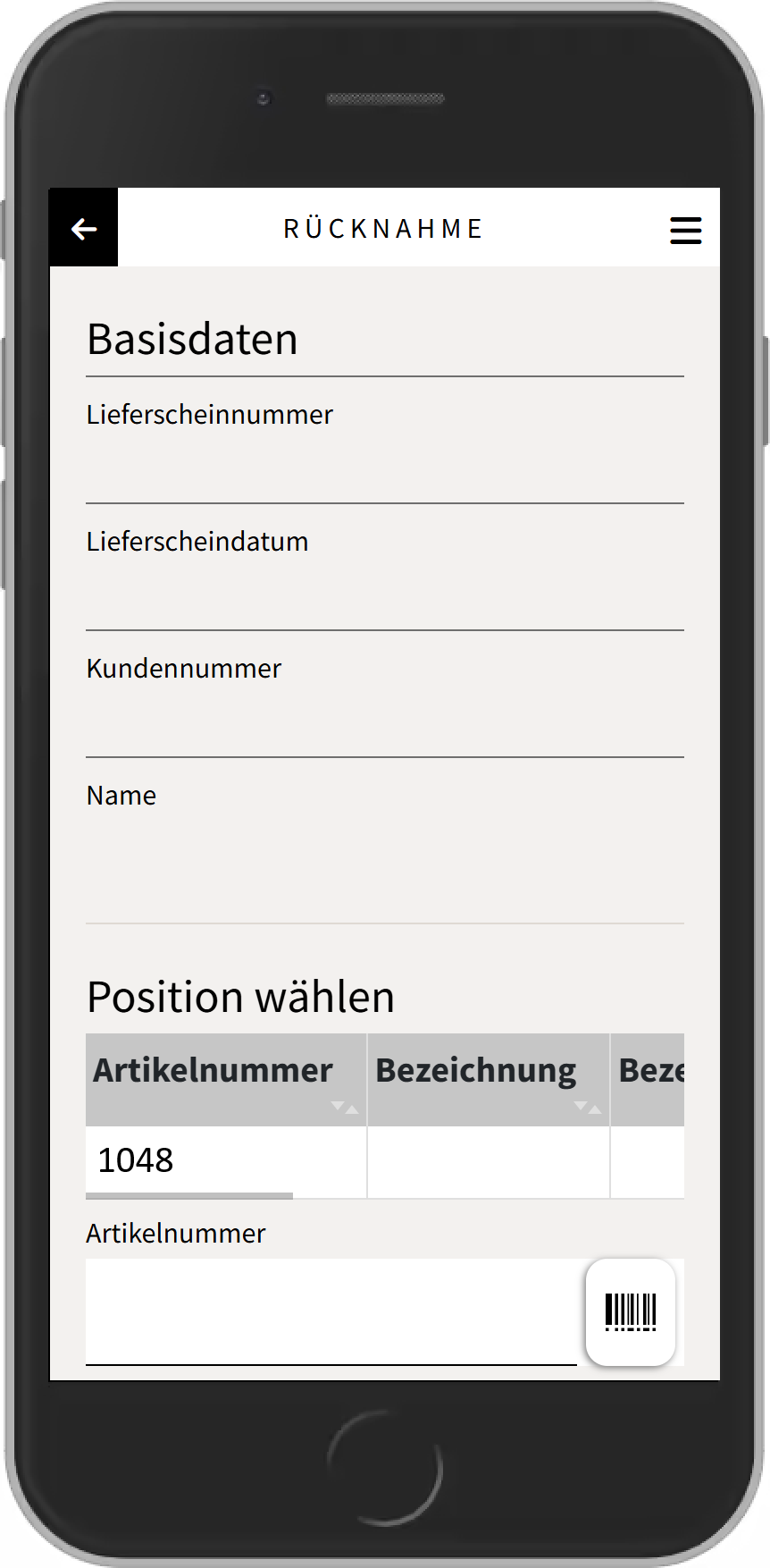 Lieferscheinnummer eingeben