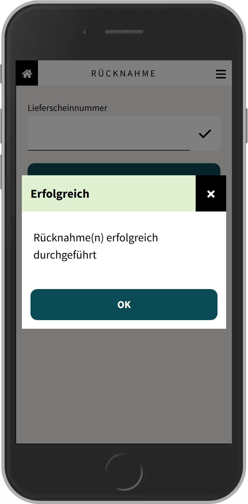 Mit Klick auf "OK" werden die Rücknahmen gebucht und bei Erfolg wird eine Meldung angezeigt