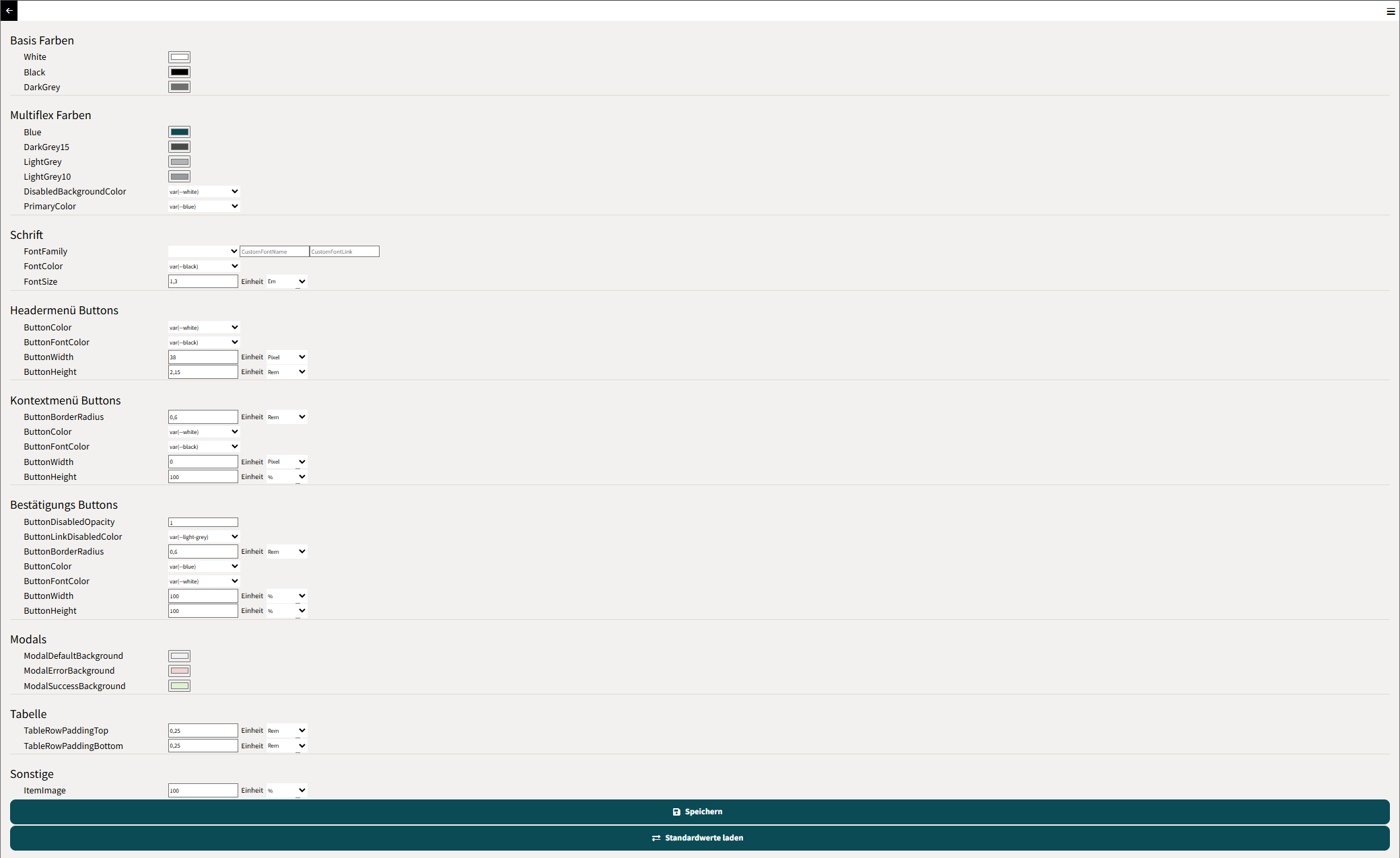 Sollte ein Fehler beim Ändern gewisser Werte aufgetreten sein, kann der gesamte Inhalt einfach mit dem Button "Standardwerte laden" der Ursprungszustand wieder hergestellt.