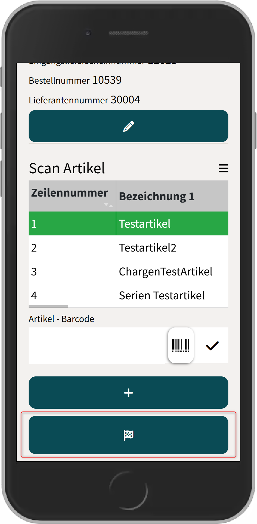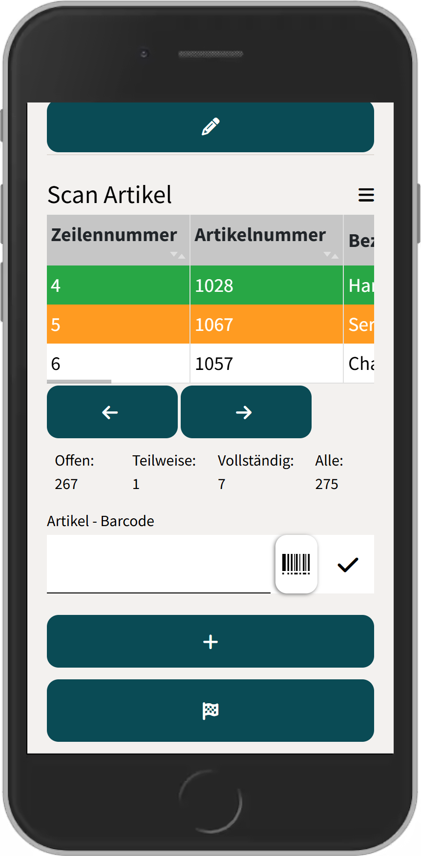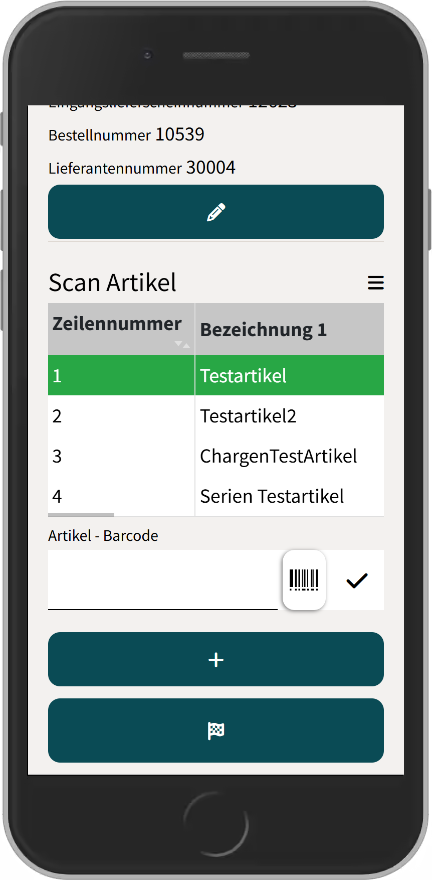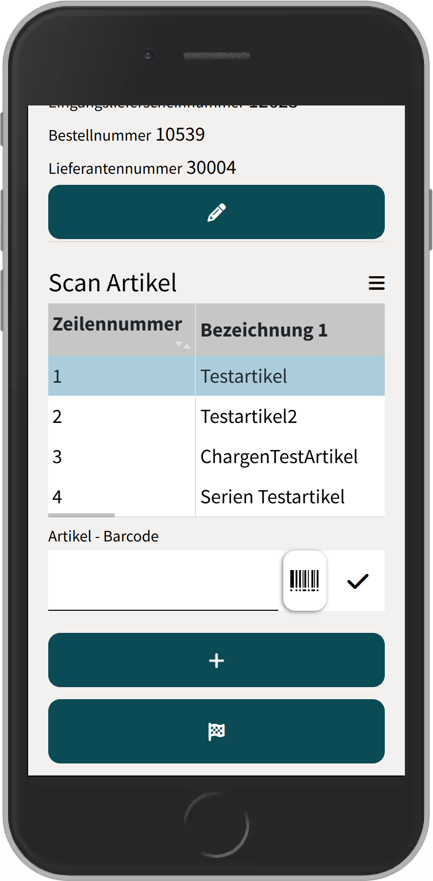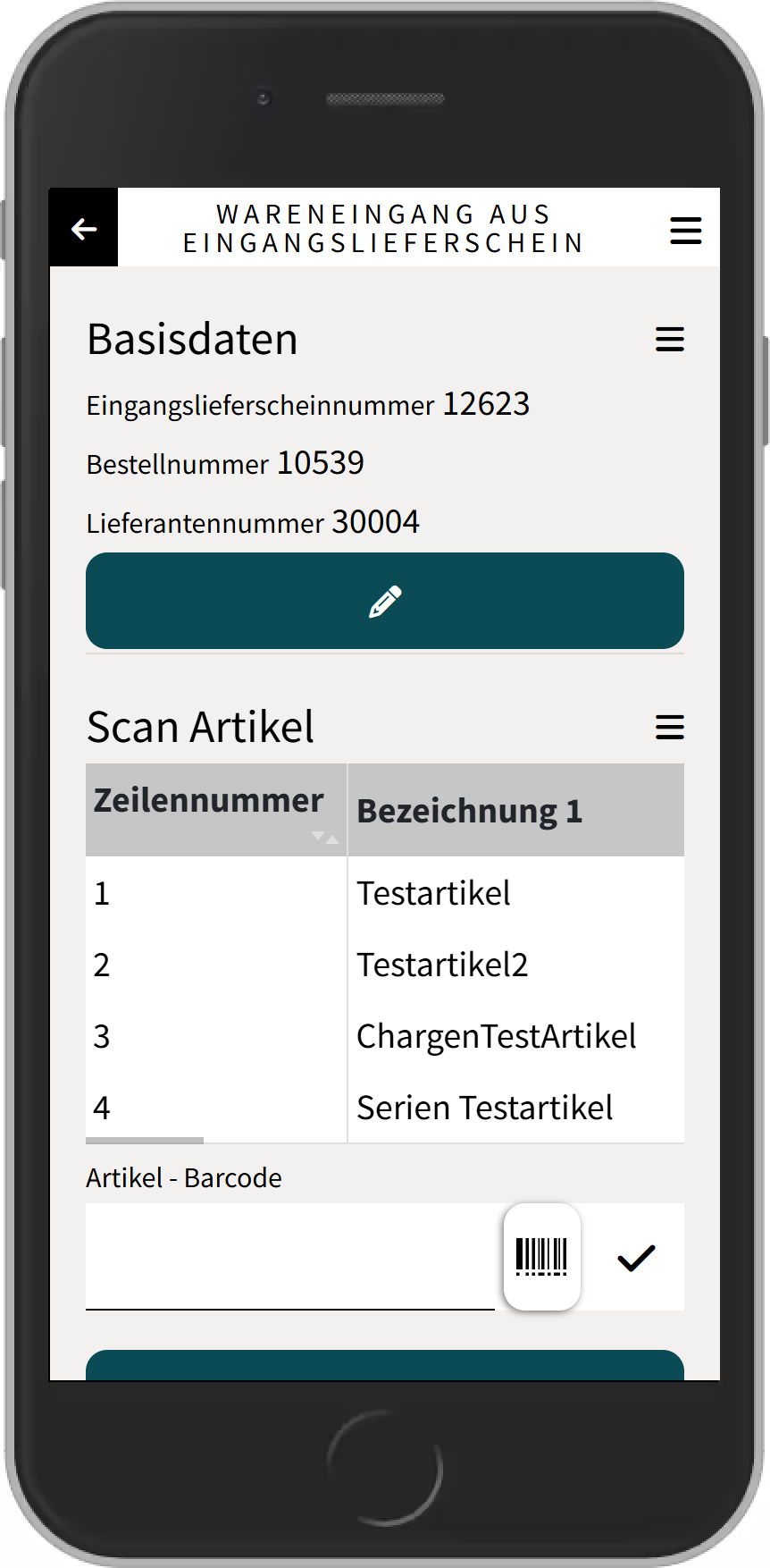 Ist der eingegebene Eingangslieferschein vorhanden und nicht durch einen anderen Benutzer gesperrt, können nachfolgend in der Hauptansicht die Artikel gescannt werden.