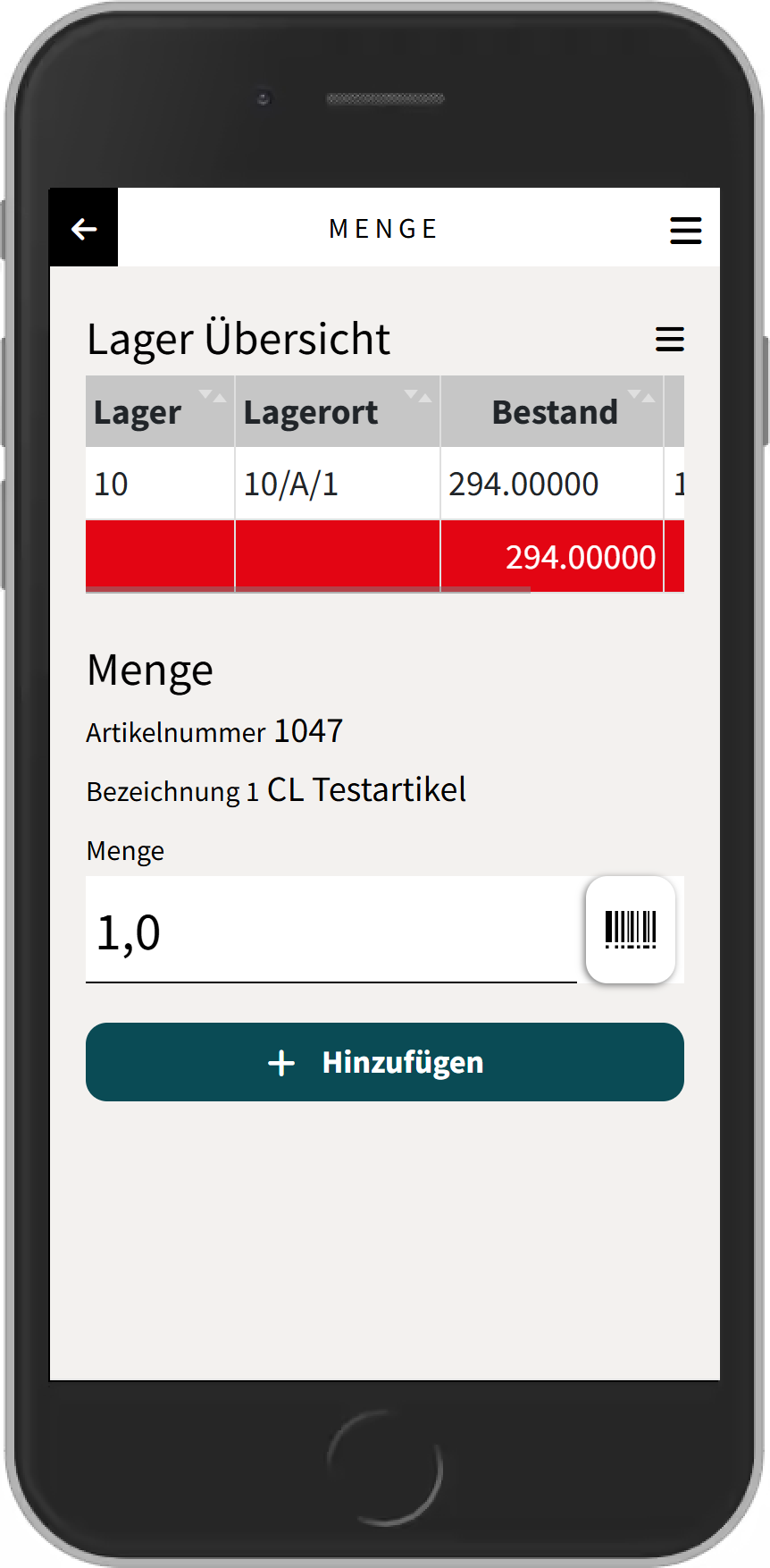 Mit Klick auf Hinzufügen wird die Einlagerung des Artikels durchgeführt und die selektierte Tabellenposition in der Hauptansicht aktualisiert bzw. ein neuer Eintrag in der Tabelle hinzugefügt.