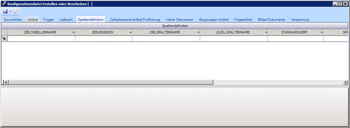 Auf dieser Karteikarte werden die Definitionen hinterlegt, welche Spalte der Datendatei in welche Tabelle und Spalte in der Datenbank eingelesen werden.