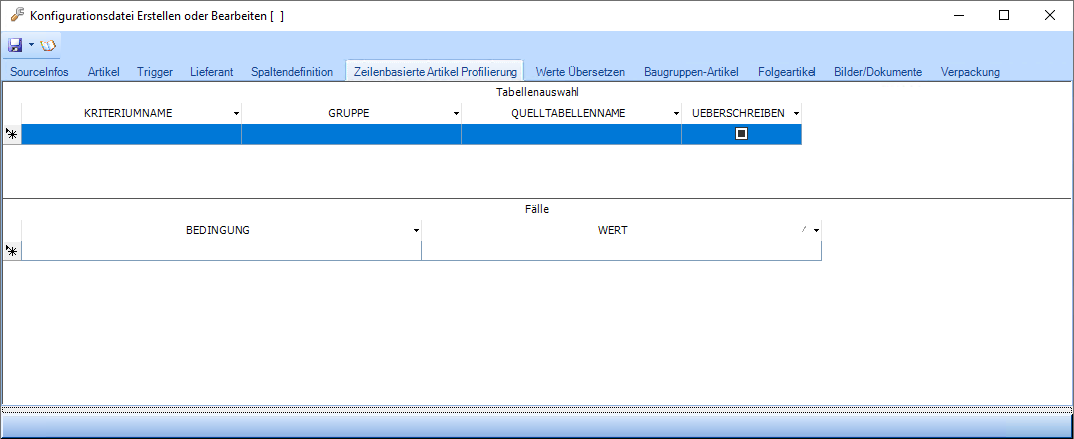 Kartei Zeilenbasierte Artikel Profilierung