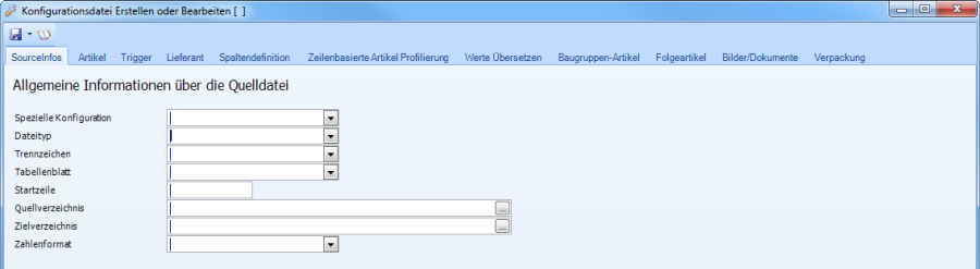 Auf dieser Karteikarte werden Informationen über die Quelldatei verlangt um diese richtig identifizieren und importieren zu können.