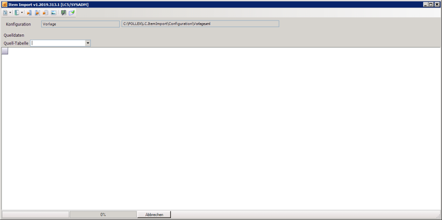 Das Programm LC.ItemImport besteht grundsätzlich aus zwei Fenstern. Zum einen das Haupftfenster, in welchem die Konfigurationsdatei und die Datenquelle ausgewählt werden können, die Daten visualisiert und kontrolliert werden können und auch der eigentliche Import stattfindet. Zum anderen gibt es noch den Konfigurationsassistenten, welcher eine Benutzeroberfläche zur Erstellung der Konfigurations- bzw. Steuerungsdateien bietet.