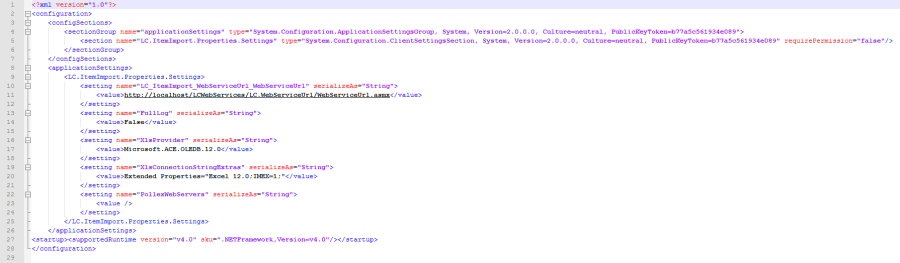 Sind die Dateien aus dem Download in diesen Ordner entpackt, dann ist es notwendig vor dem ersten Start des Programmes die Datei LC.ItemImport.exe.config zu bearbeiten.
