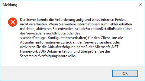 Der Server konnte die Anforderung aufgrund eines internen Fehlers nicht verarbeiten...