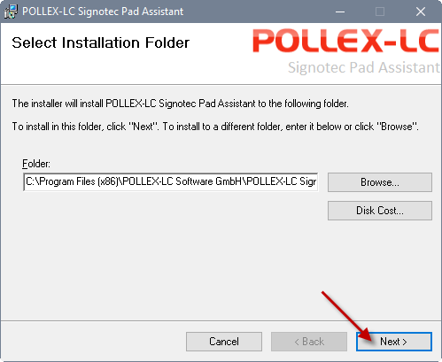 Standard-Ordner: C:\ProgramData\POLLEX-LC Software GmbH\POLLEX-LC Signotec Pad Assistant